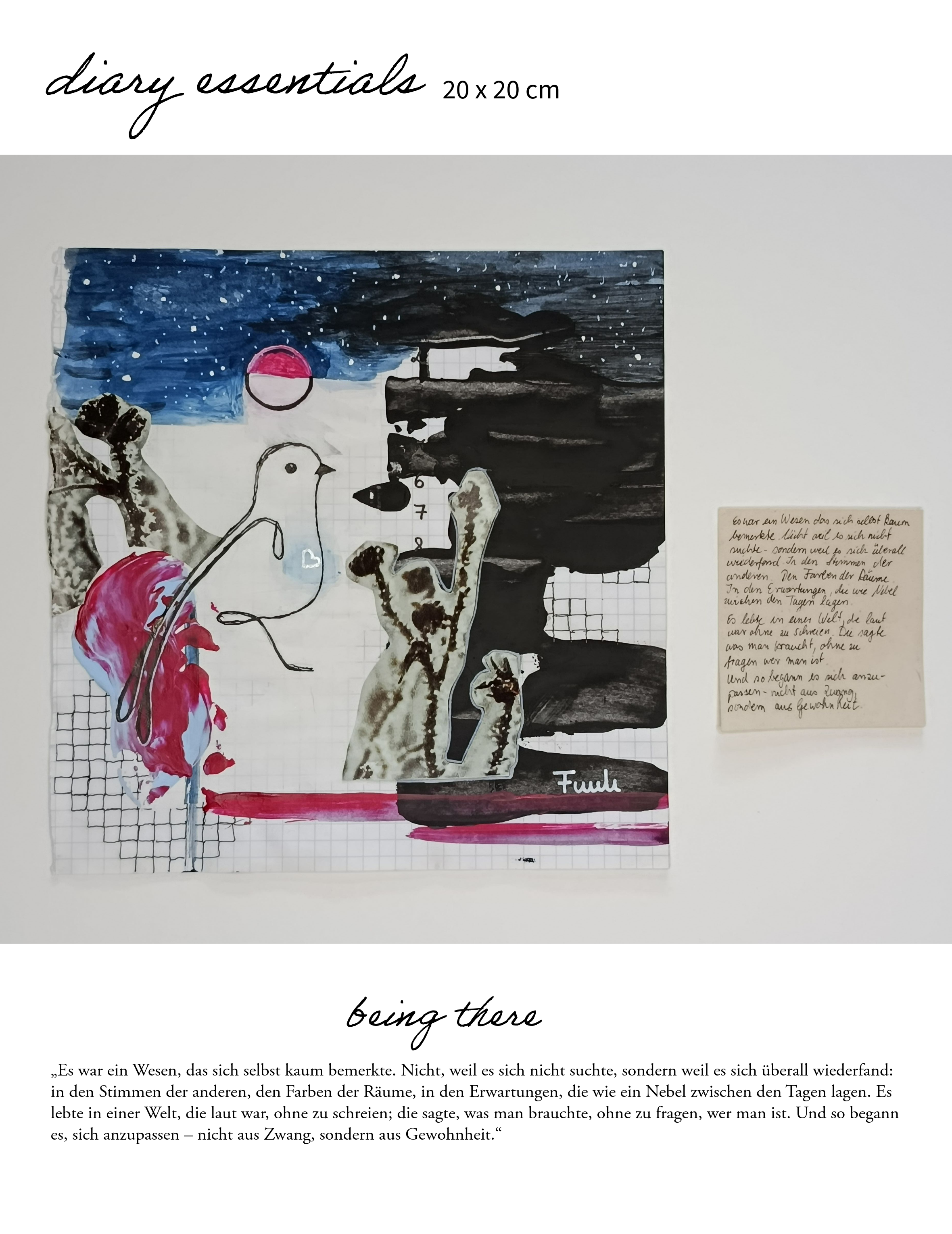 Lange Zeit war meine Kunst für mich ein Werkzeug der Verarbeitung – ein Raum, um Erlebtes zu ordnen und Schichten abzutragen. Heute hat sich dieser Fokus gewandelt. Was früher Suche war, ist heute Ankunft. Meine Arbeit ist zu einer spielerischen Ausdrucksweise meines Erlebens der Welt geworden. Ich erschaffe nicht mehr, um etwas zu bewältigen, sondern um das zu feiern, was ist. Es ist der Übergang von der Rekonstruktion der Vergangenheit hin zur puren Präsenz im Jetzt. In meinen aktuellen Serien wie den diary portraits erlaube ich mir eine radikale Freiheit: Kunst ist für mich kein Spiegel mehr, den ich für andere halte, sondern ein direktes, ungefiltertes Ja zu mir selbst. Spielerisch, ehrlich und ohne den Zwang, etwas werden zu müssen – weil bereits alles da ist.